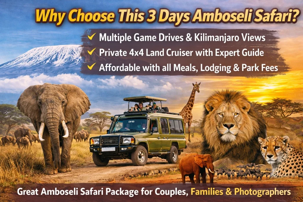 Experience the beauty of Kenya with our 3 days Amboseli safari, one of the best short Kenya safari packages for wildlife and Mount Kilimanjaro views....